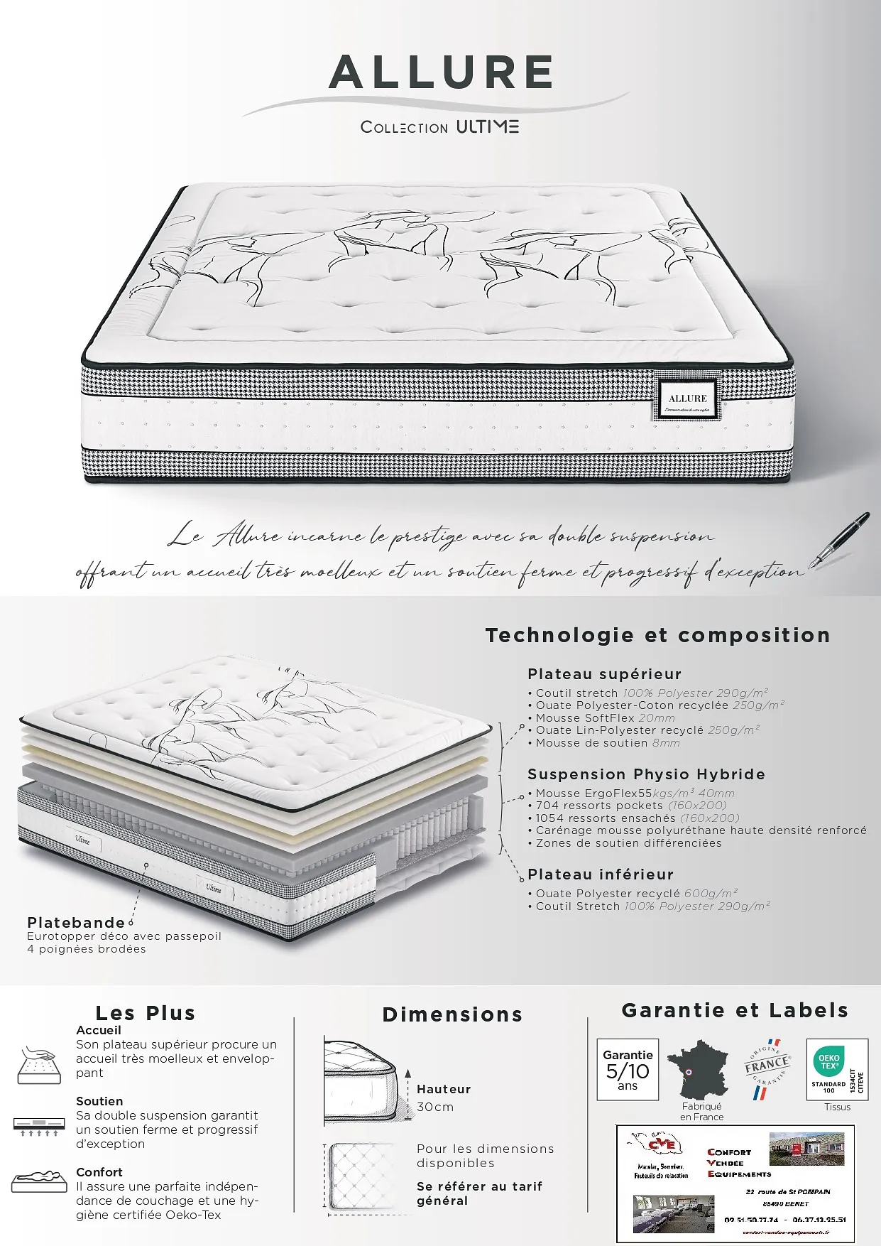 Double suspension 1054 ressorts ensachés + 704 ressorts Pocket.