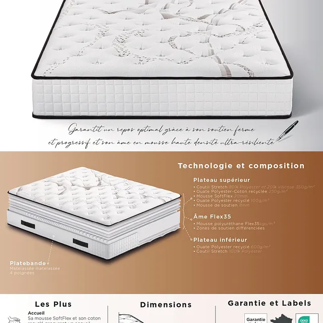 Âme de 16cm en mousse polyuréthane Flex 35kgs/m³ ( literie ebac ) .