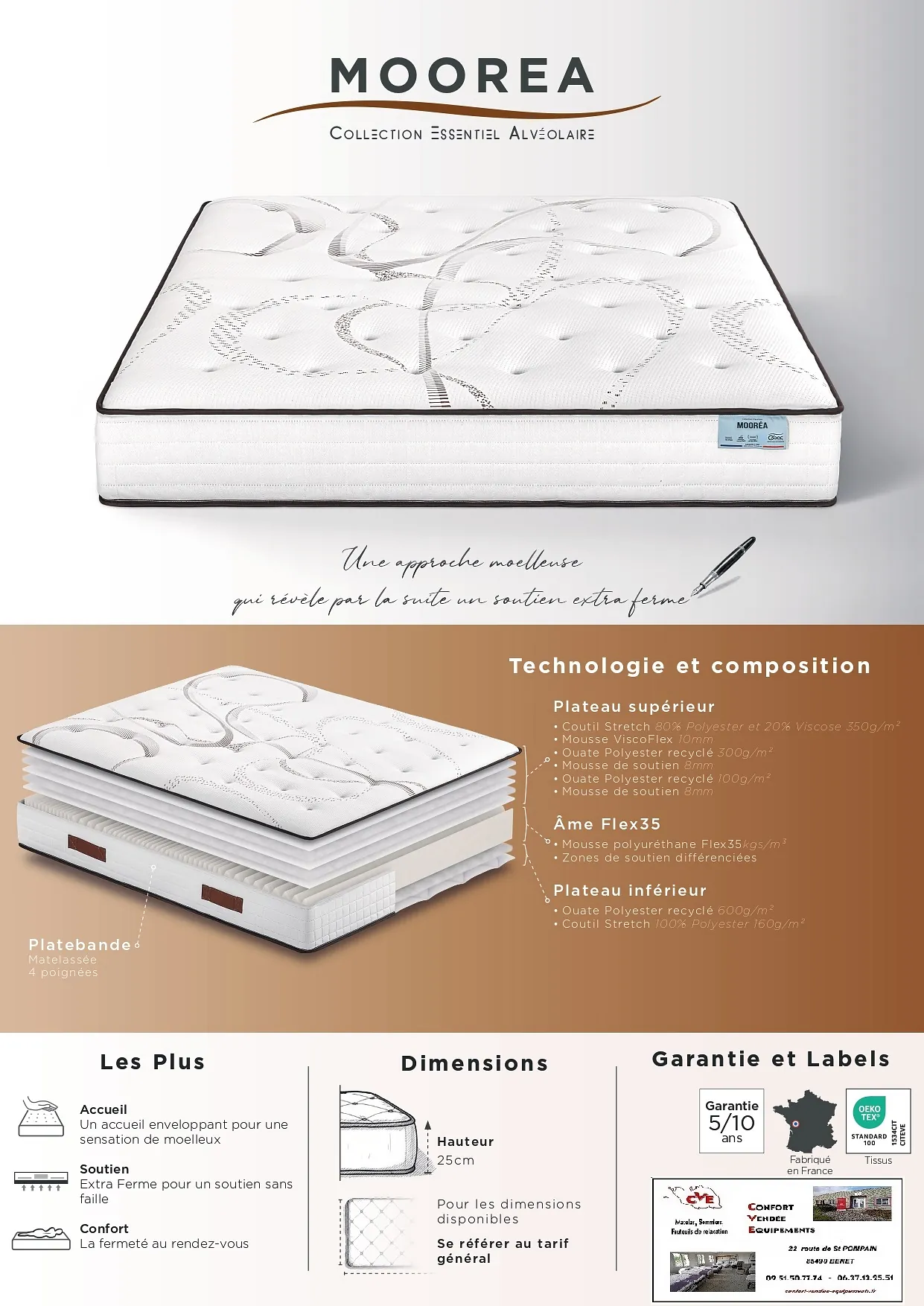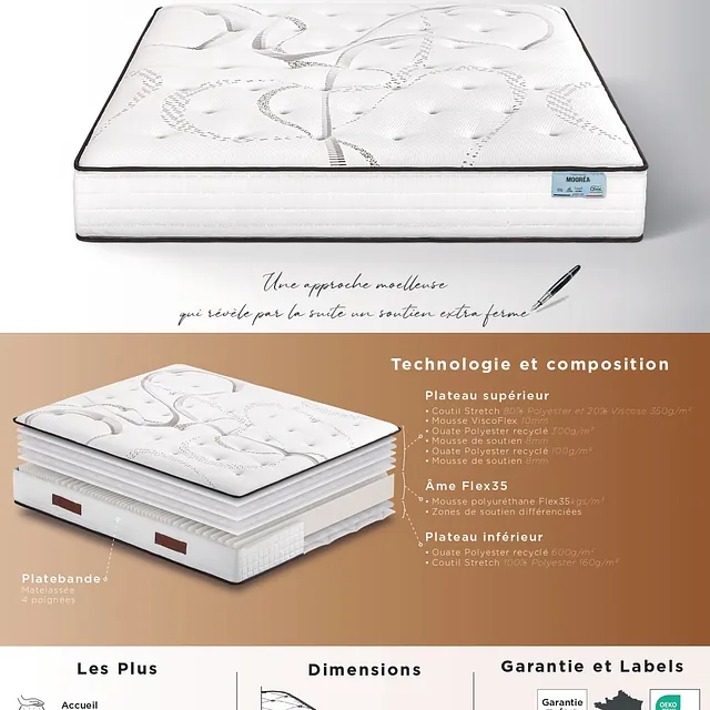 Âme de 19cm en mousse polyuréthane Flex 35kgs/m³ ( literie ebac ) .