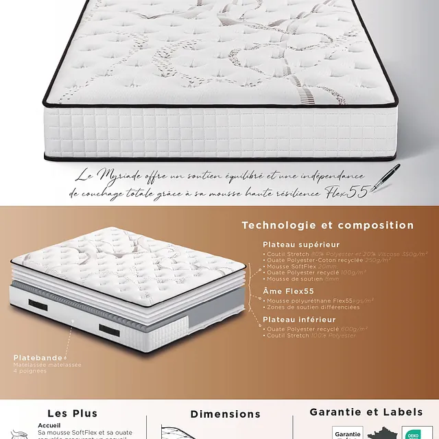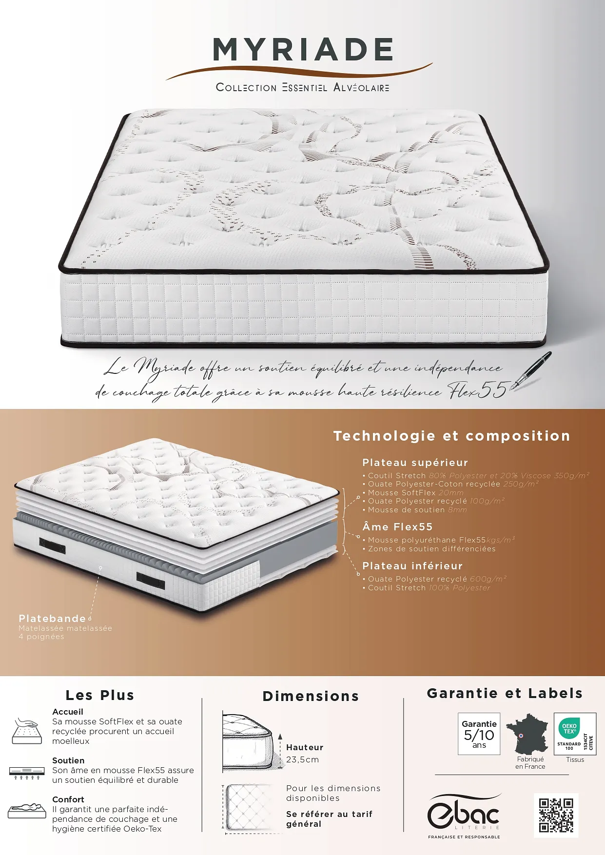 Âme de 17cm en mousse polyuréthane Ergoflex 55kgs/m³ ( literie ebac ) .