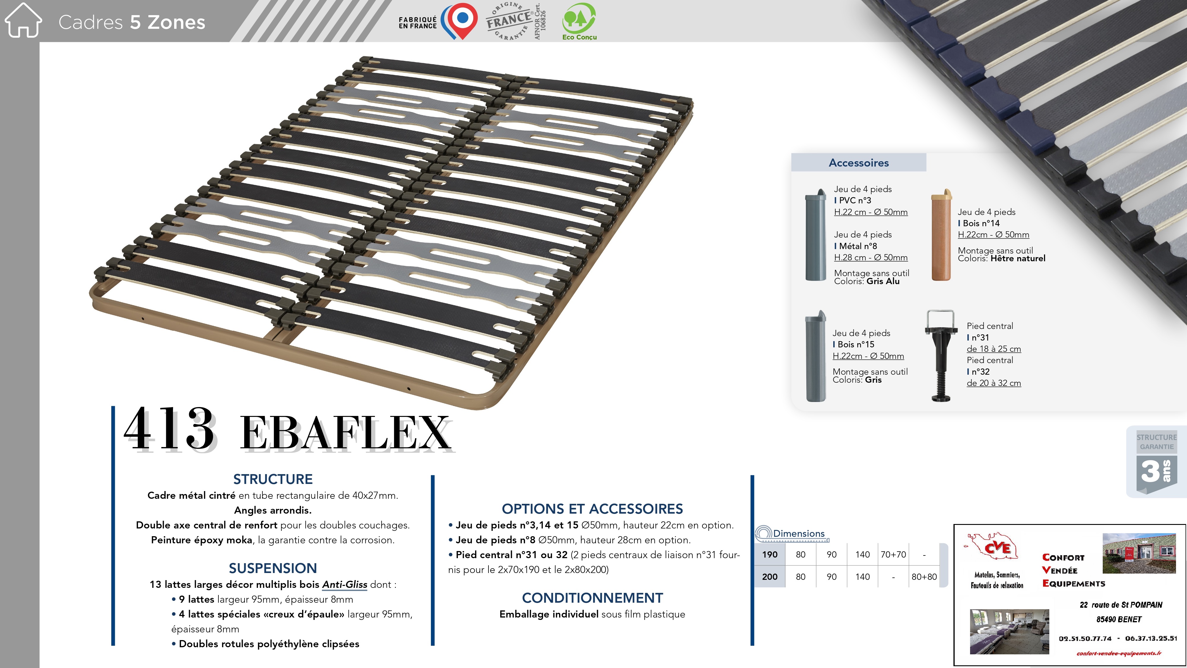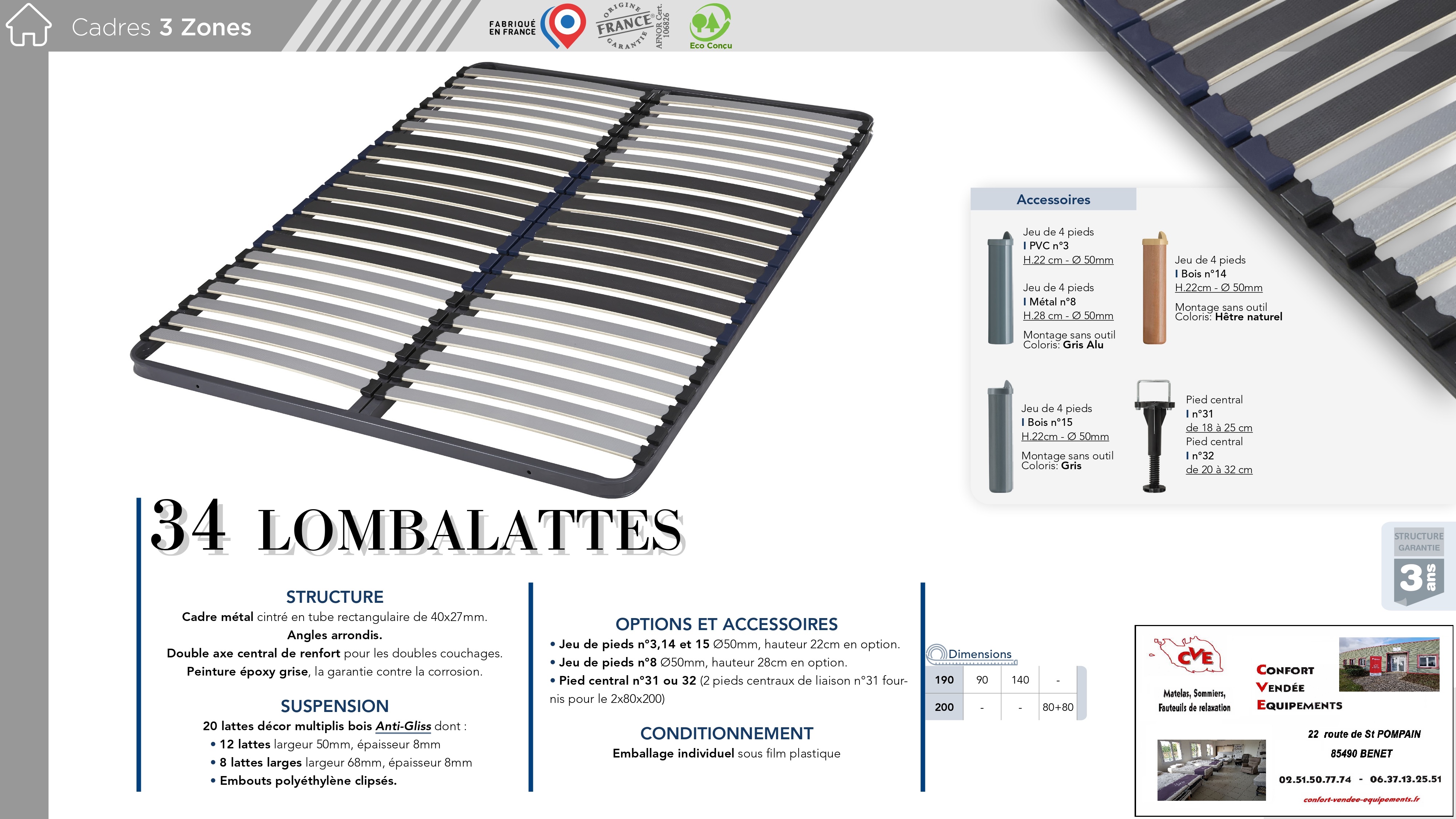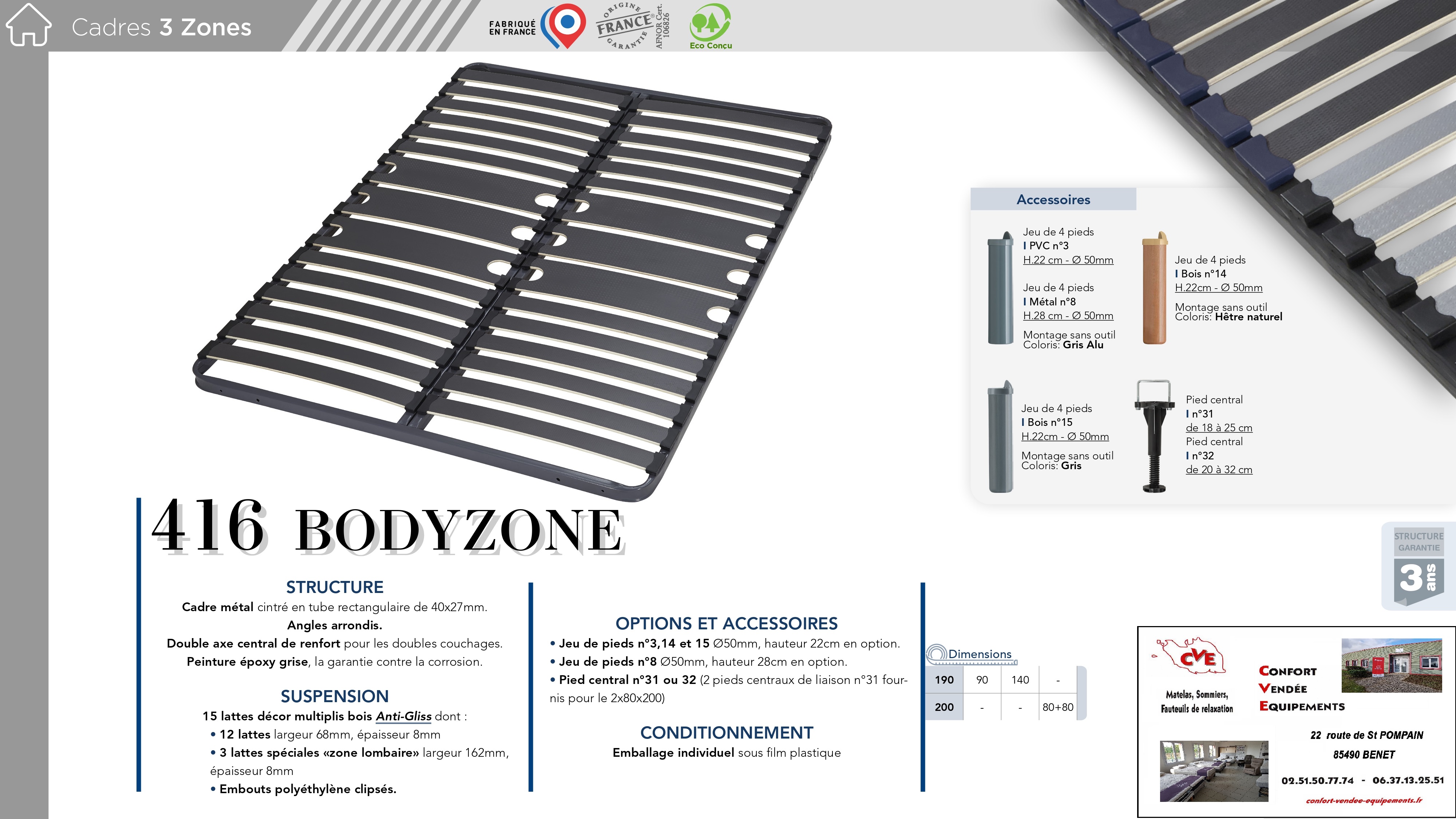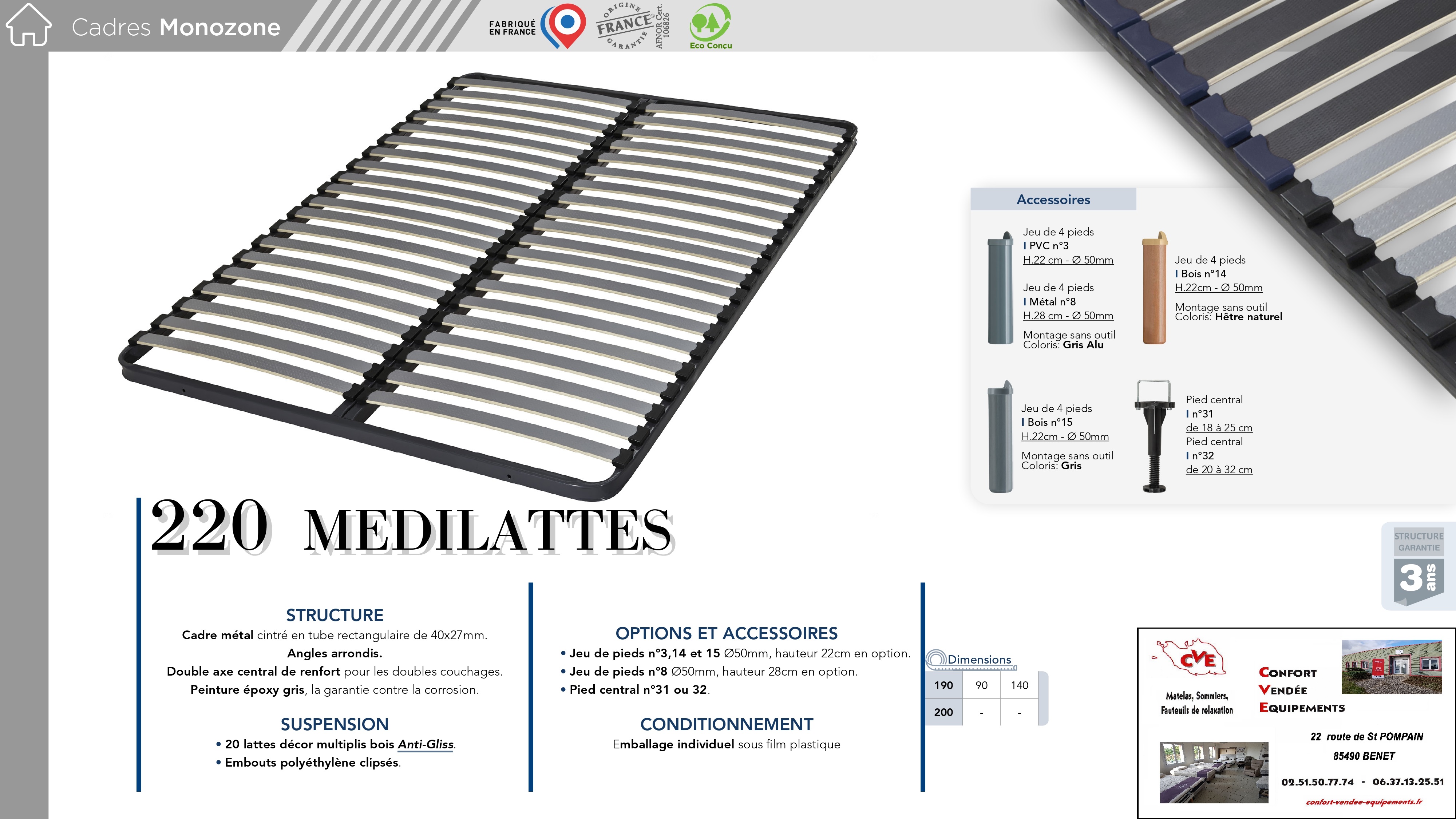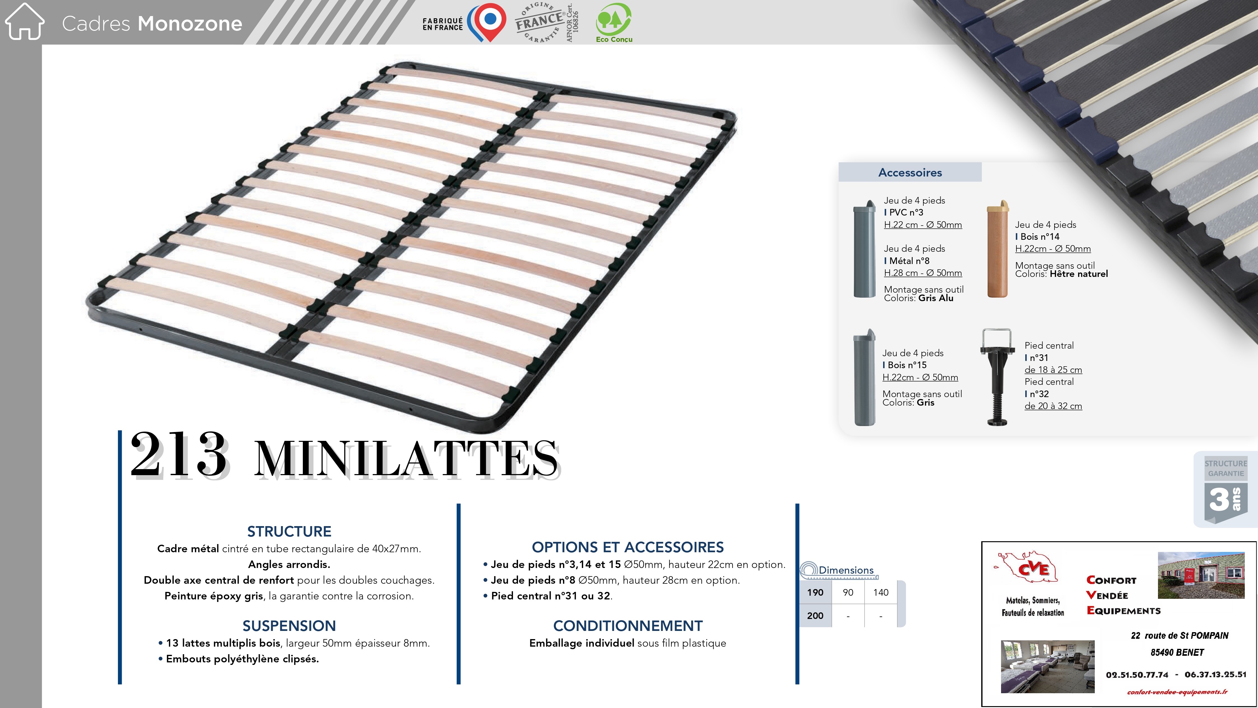 11 modèles : de 70/190 cm à 160/200 cm (Voir fiches en photos)